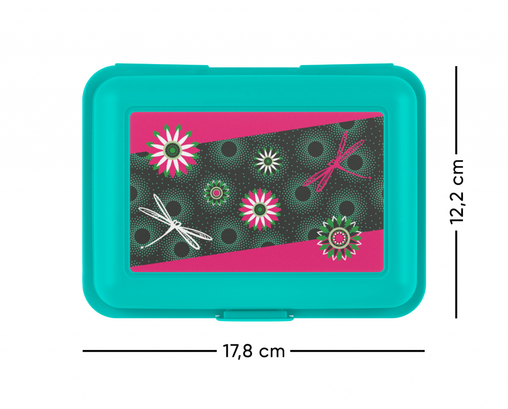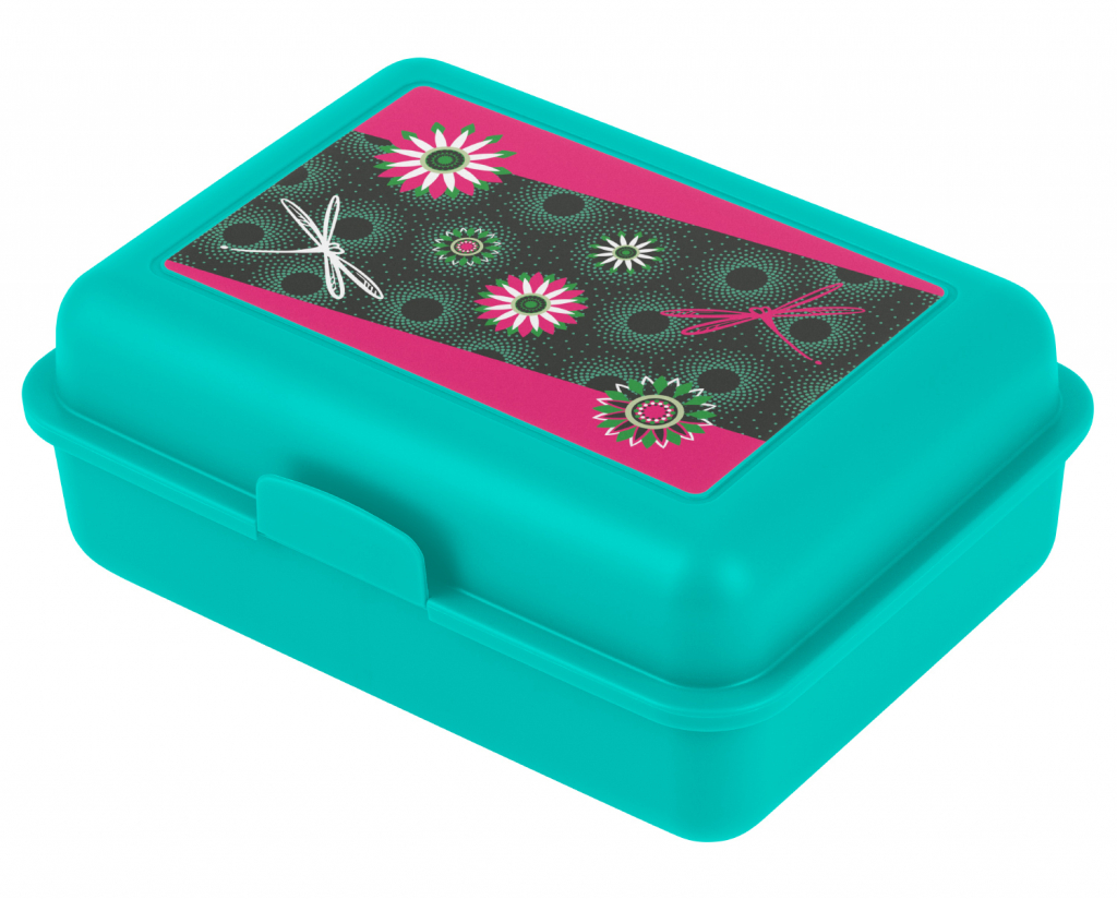 Dievčenský plastový box na desiatu s obrázkom kvetov.