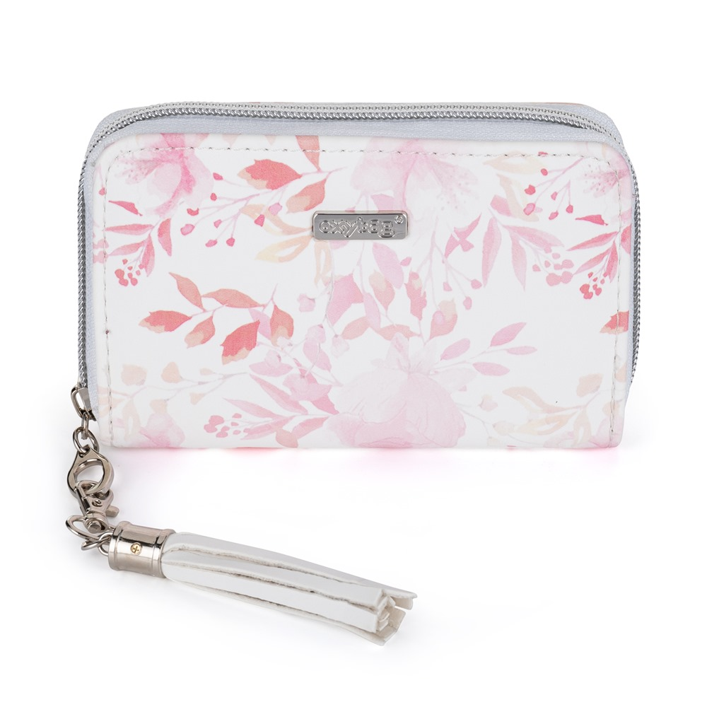 Malá dámská peněženka v květinovém provedení. Uvnitř jsou 4 menší kapsy na věrnostní karty, 3 oddělené přihrádky a 1 uzavíratelná kapsa na zip na drobné mince.