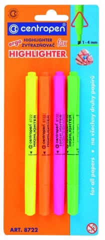 Zvýrazňovač Centropen 8722/4 súprava ergo